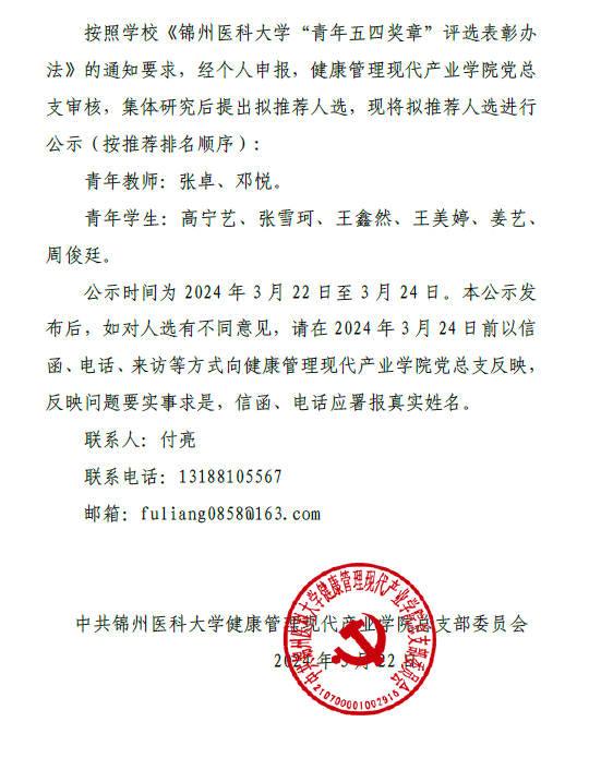 学院关于《beat365中文官方网站“青年五四奖章”》拟推荐人选公示