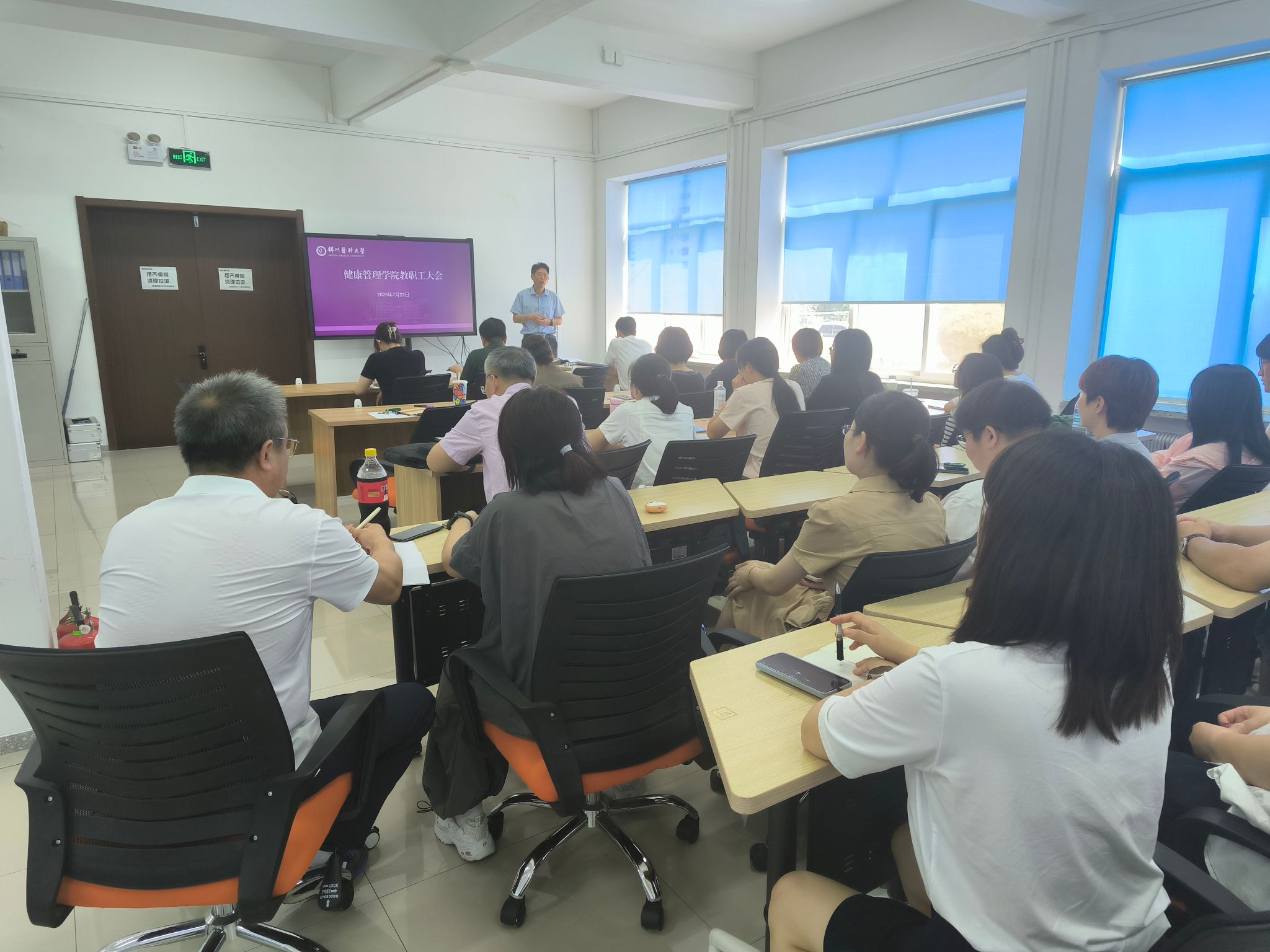 马春宇向全体教职工介绍了新任领导班子及新任科级干部、教学秘书、科研秘书和新引进博士情况,同时对学校将原健康管理现代学院拆分并更名为beat365中文官方网站的重大意义及学院的未来发展规划做了解释说明,未来学院要以健康管理学的学科建设为龙头,以现代产业学院建设为路径,加强公共事业管理、医疗保险、健康服务与管理专业建设,提升人才培养质量。他充分肯定了原健康管理现代产业学院上半年取得的各项工作成绩,对学院暑期及下半年工作进行整体部署,在与中国平安财产保险有限公司辽宁分公司、大象营养供应链管理有限公司等企业合作的基础上,继续拓宽合作渠道,推进现代产业学院建设工作。